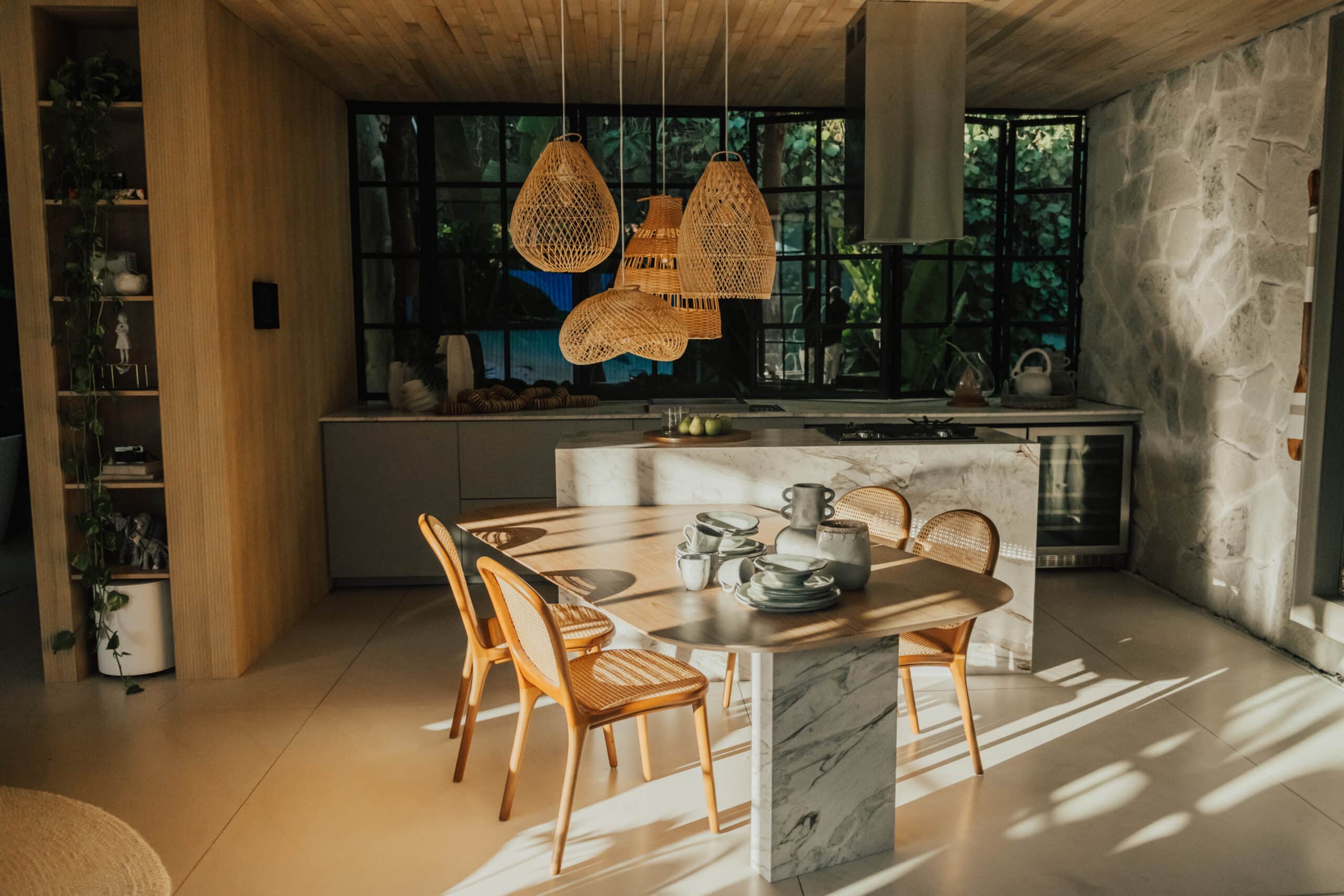 Um espaço que preza pela simplicidade, acolhe histórias e retorna às origens. Assim é a casa de praia Morada Mar, um lugar onde móveis confortáveis se mesclam à vegetação e dão origem a um lugar de descanso para sentir as texturas e se conectar com a natureza. Com a premissa de poucos e bons elementos, Maria Alice Crippa e Gustavo Assis valorizam a simplicidade e o natural. Tiraram partido do traçado elegante, de superfícies limpas e da volumetria pura tão associada à identidade do escritório. As cores neutras e, especialmente, as pedras, o mármore e a madeira dividem a cena, assim como a seleção de móveis assinados.